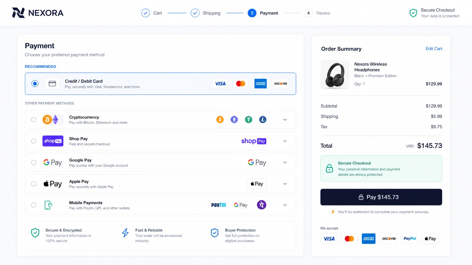 - Разнообразие способов оплаты: Поддержка кредитных/дебетовых карт, электронных кошельков, мобильных платежей, криптовалют и P2P-решений.