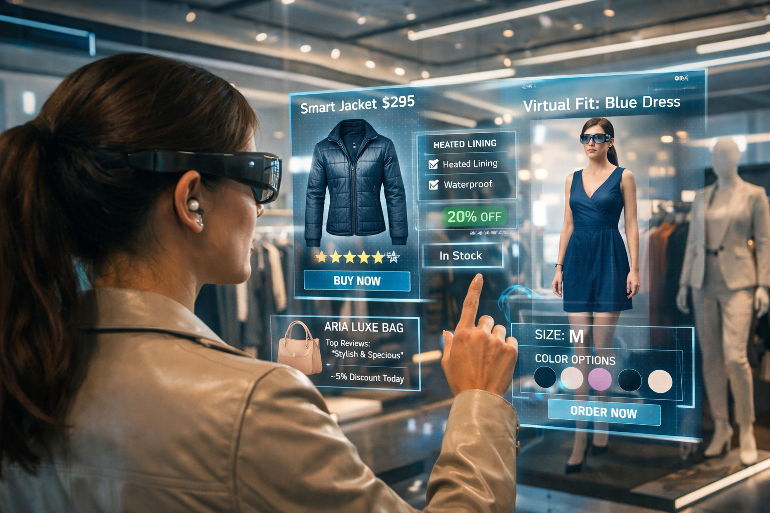Представьте, что вы подходите к полке с кроссовками, наводите смартфон или смотрите через AR-очки, и тут же видите не только цену, но и видеообзор модели, доступные размеры на складе, отзывы реальных покупателей и даже виртуальную примерку. AR решает главную проблему физического магазина — ограниченность пространства для предоставления информации.